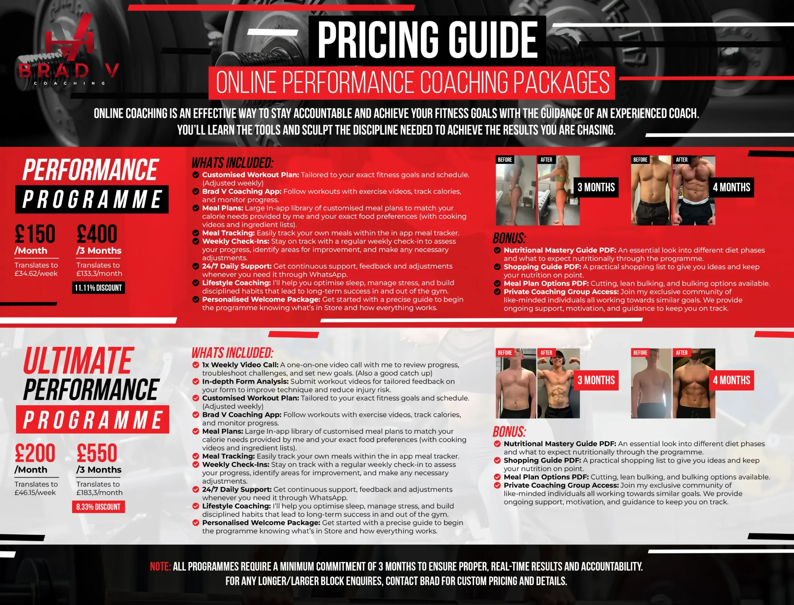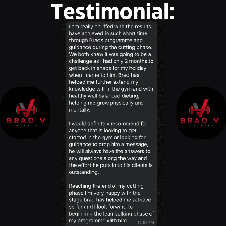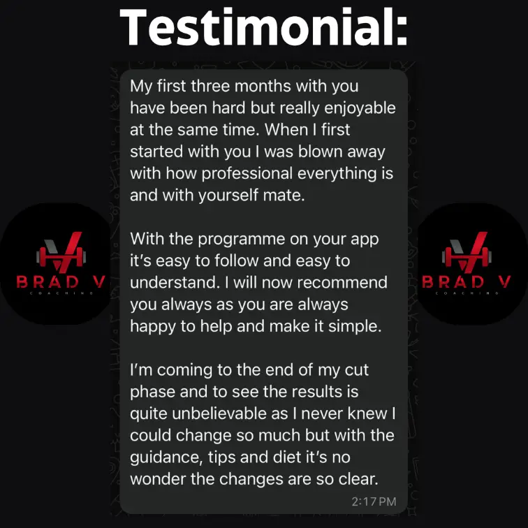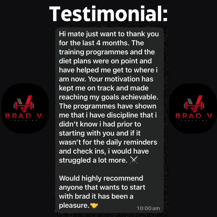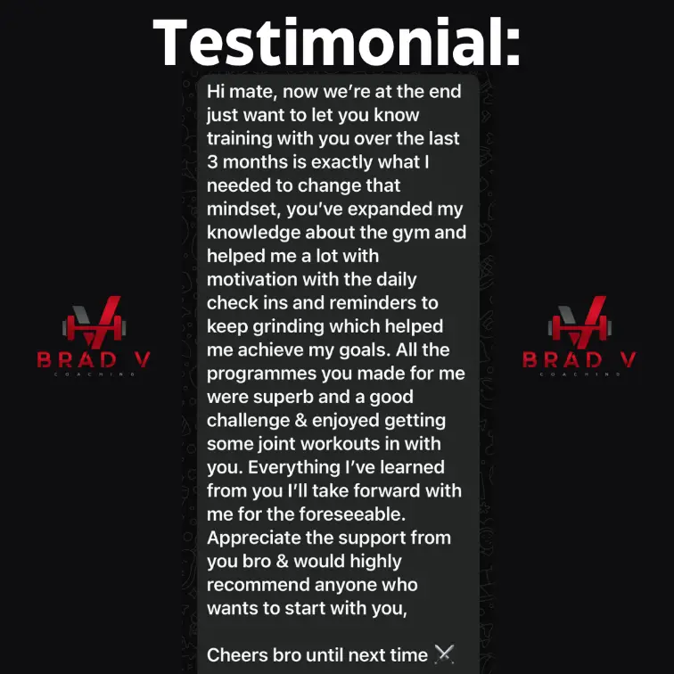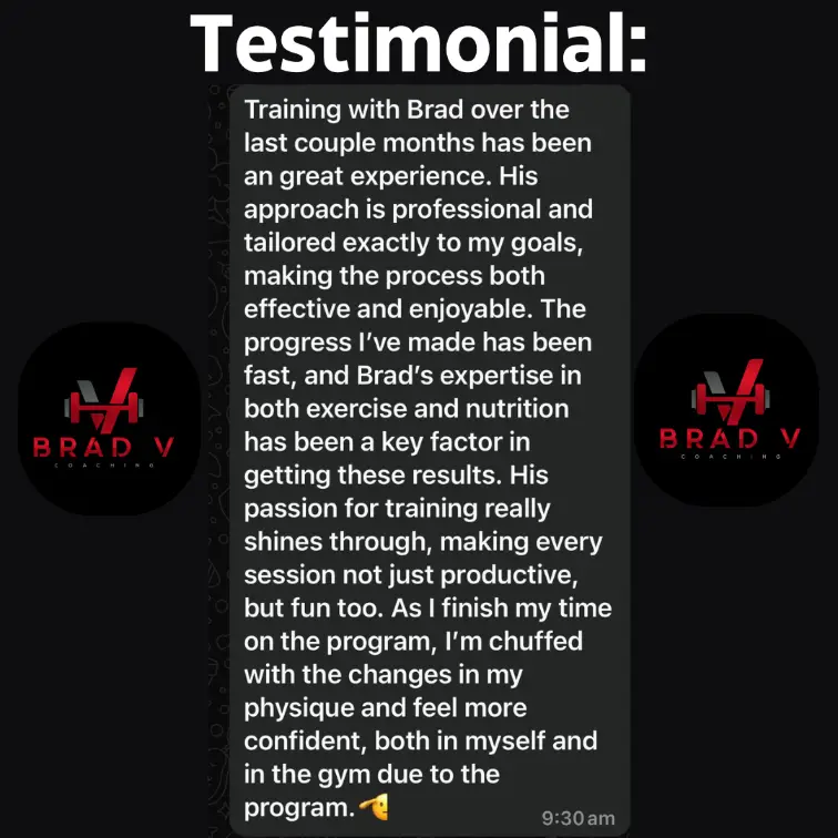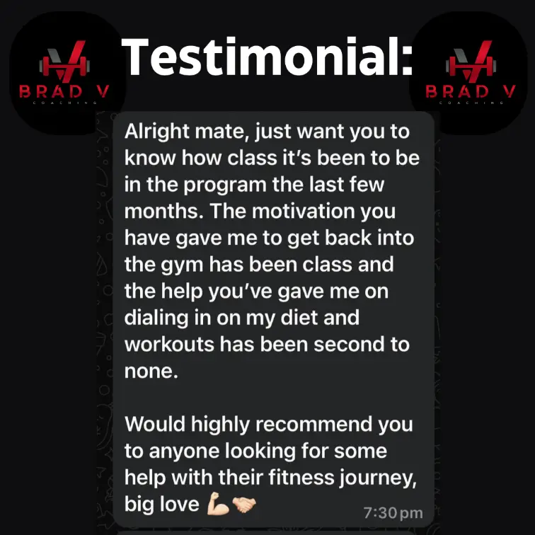 Online coaching with Brad is a personalised approach built around you and your weekly schedule to achieving your fitness goals.
