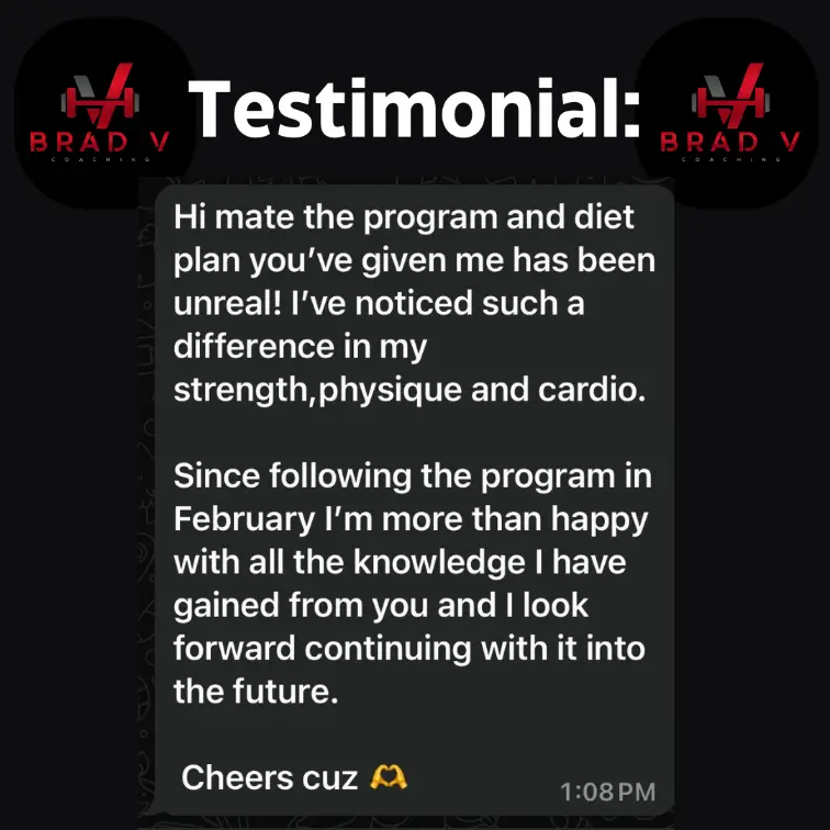 Through weekly video calls/form analysis (Premium), Constant check-ins, and 24/7 WhatsApp support, I’ll guide you every step of the way. Together, we’ll adjust your plan, tackle challenges, and ensure you stay motivated and disciplined through the process.